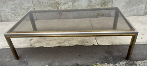 TAVOLINO OTTONE E VETRO FUME' ANNI70